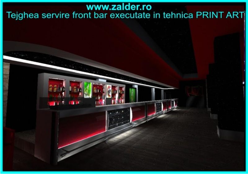 Tejghelele de bar din aceasta sectiune a siteului, sunt executate in tehnica uscata, efectul vizual fiind dat de imaginea de pe frontul barului, iluminat din cant cu banda de leduri RGB programabile.