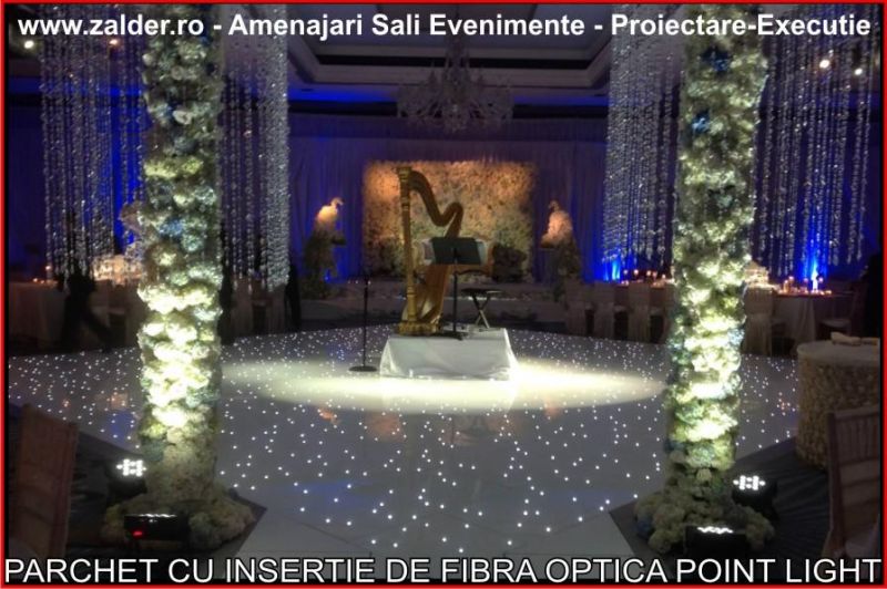 Parchetul, ringul de dans, poate fi evidentiat prin efectele de lumina conferite de insertiile de fibra optica. Acest material odata montat, nu mai necesita intretinere, nu se arde, si are un efect luminos inegalabil.